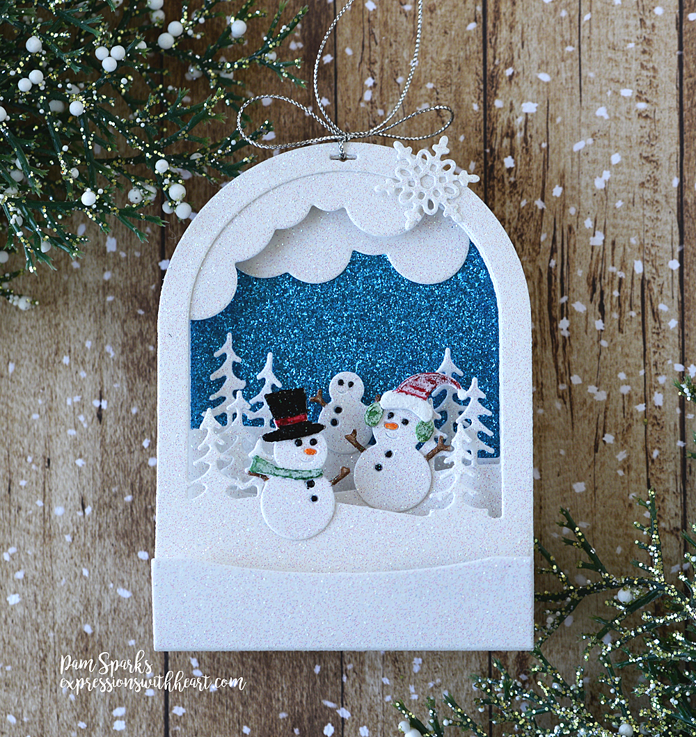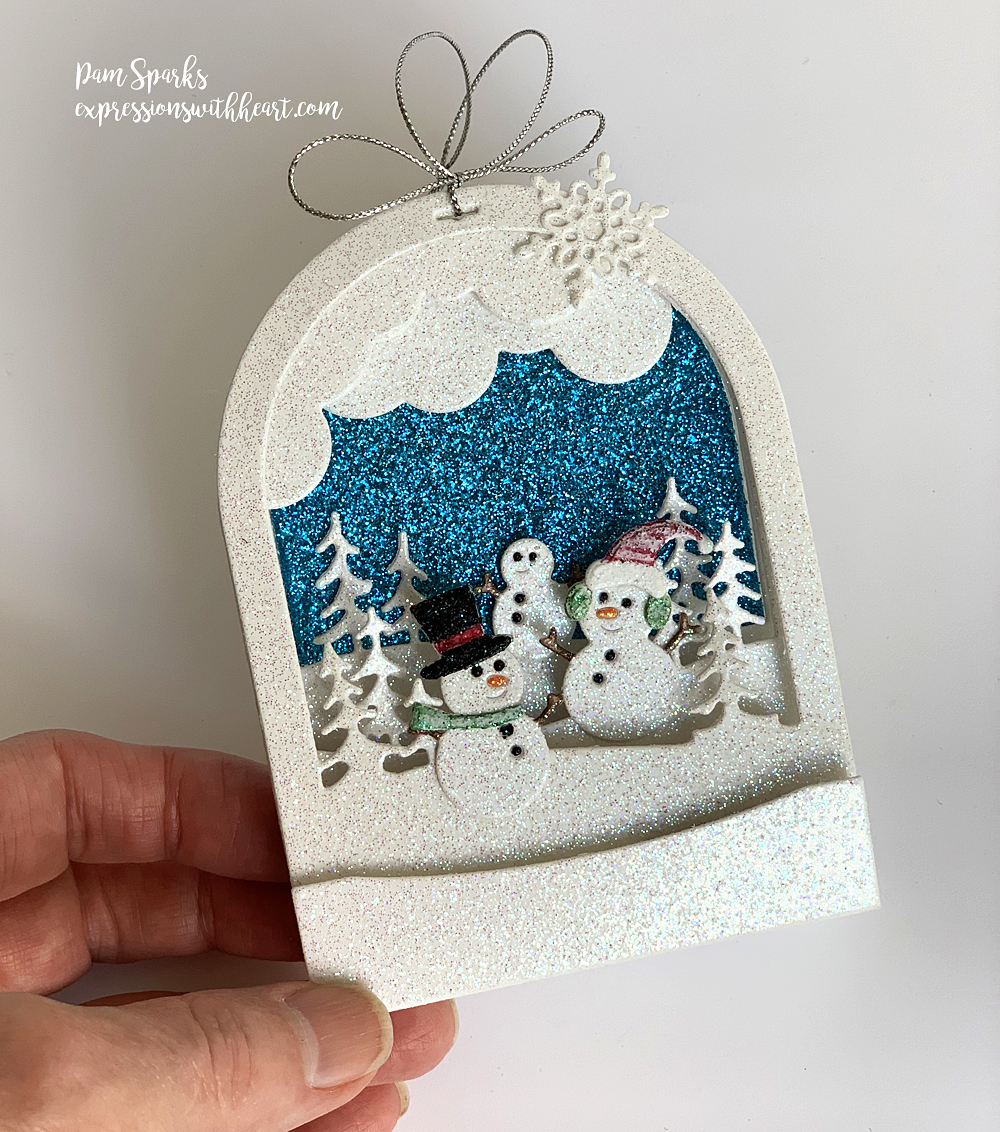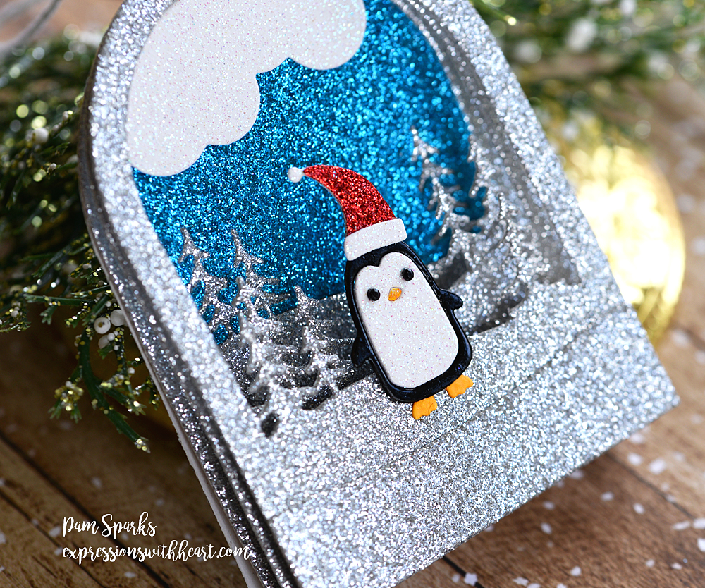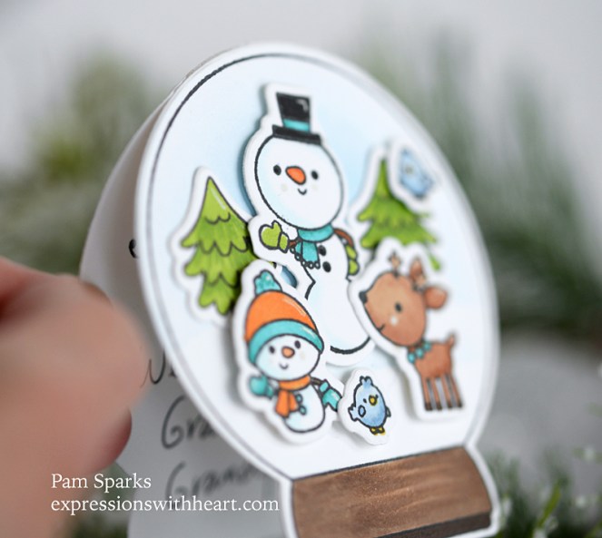 For the snow hills I used the curved borders from the LF Shadow Box Card and Shadow Box Card Theather Add-on. Trimming them to fit the front and inside.