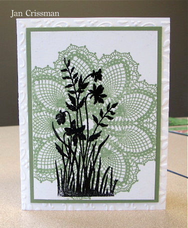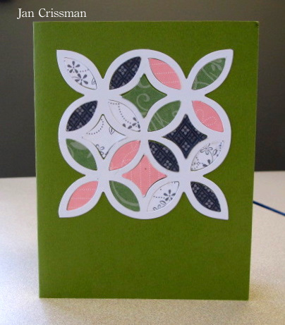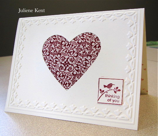 I cut the red doily out of the October Afternoon Thrift Shop paper… the pattern paper for this card is all from this 8×8 paper pad.
