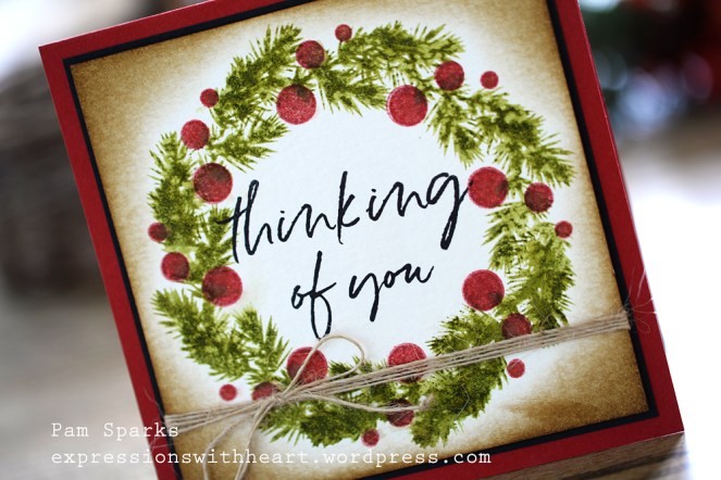 The berries are from the NEW Mistletoe Swag stamp set…scroll down my blog to see a card made with it or click HERE and another card with this stamp set HERE.