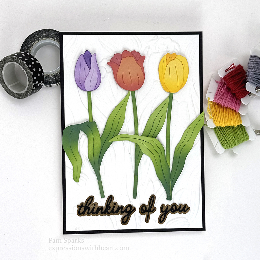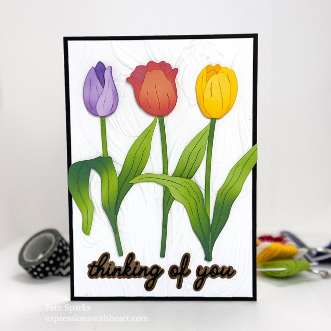 Move over Hallmark here comes a 5 x 7 card! haha It’s really hard to trim down the large embossing folders sometimes and I needed the space for these wonderful tulips and sentiment!