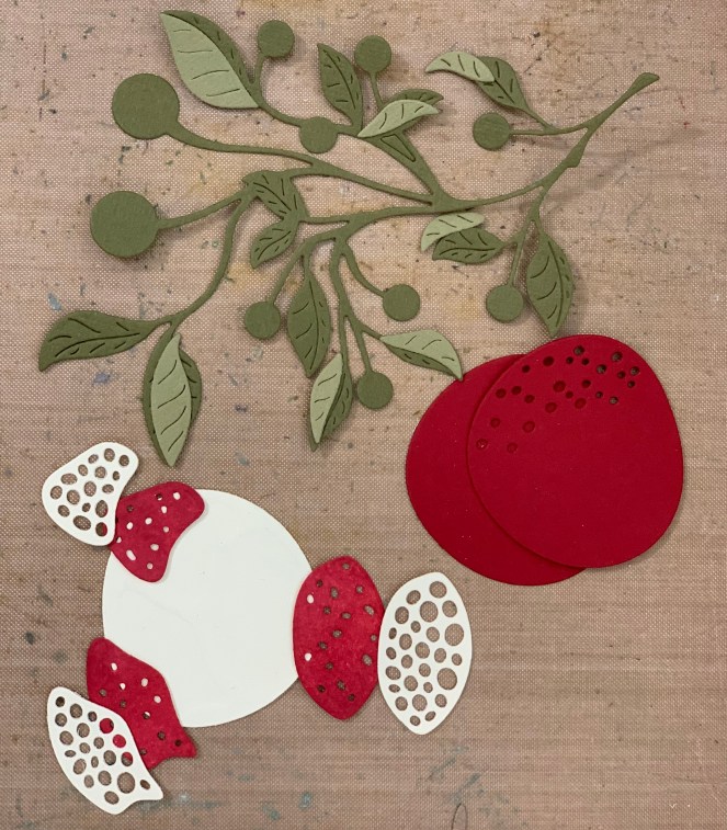 I die cut the snowflakes, holly and berries from the doodle cuts ‘snow cute’ die set.