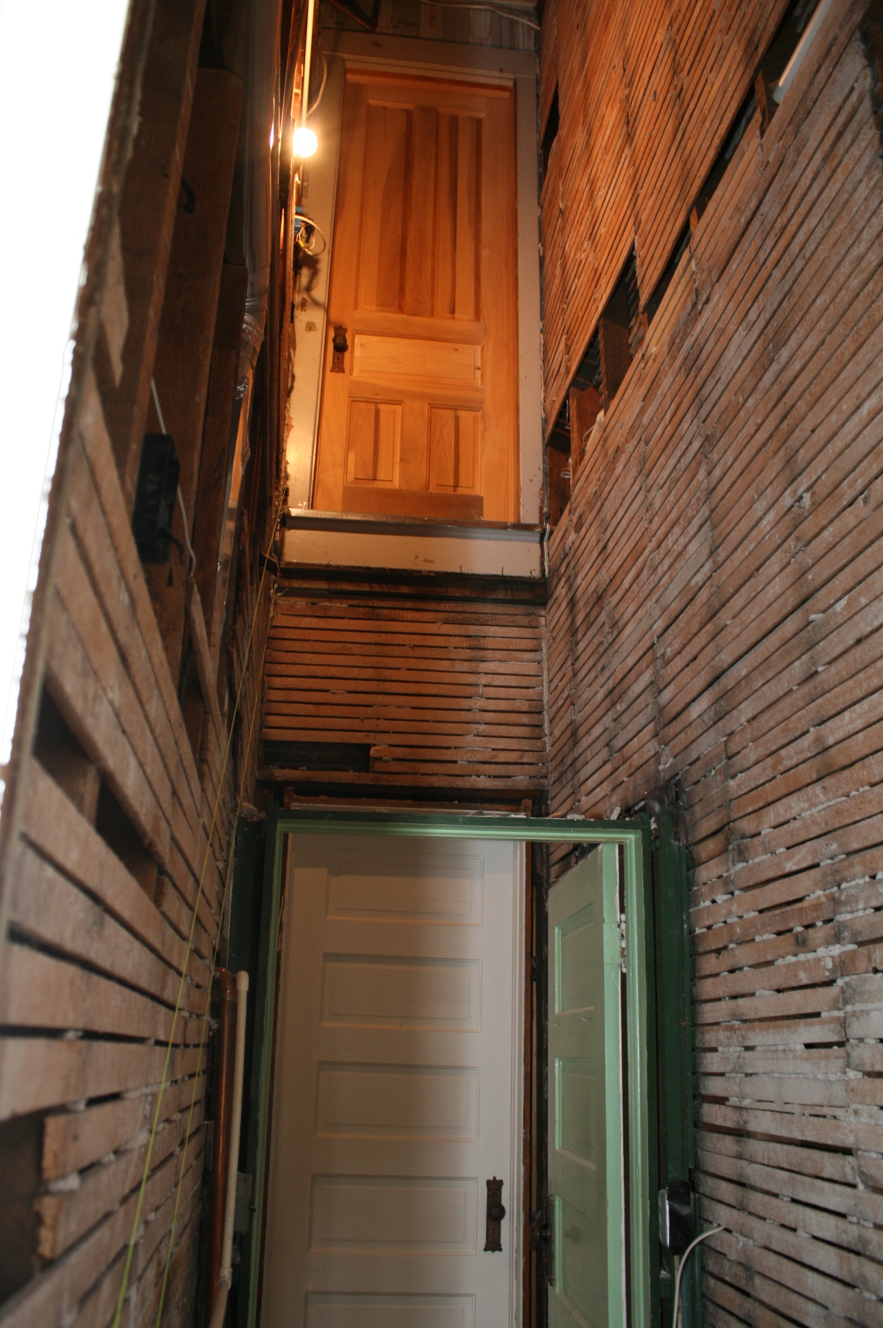 So now, it’s getting the stairway built back in…right now the cavity is 27 feet plus tall!!! Crazy…amazing how they built old houses! It’s really hard to show in pictures but I wish I could…if you open the door on the 2nd floor… don’t take a step…you’d drop all the way to the basement! eek! So much for the excitement here…more to do because of course, one thing leads to another! lol