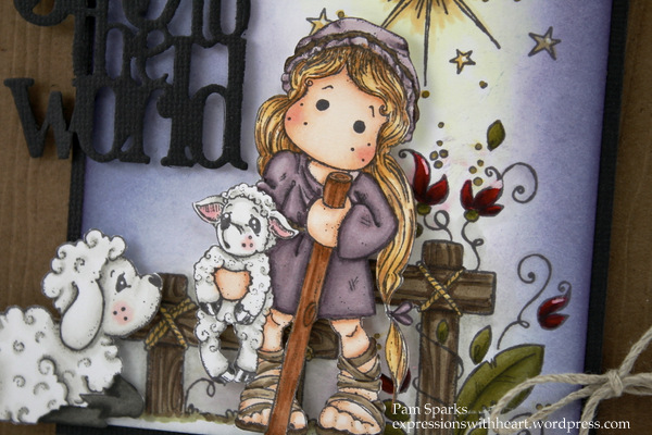 Holy Tilda with Lamb, Nativity Fence, Holy Lamb and Nativity Star are stamped on Hammermill 80# color copy cover card-stock with Memento Espresso Truffle ink and colored with Copic Sketch Markers.