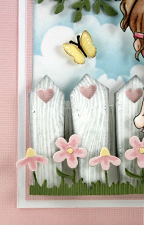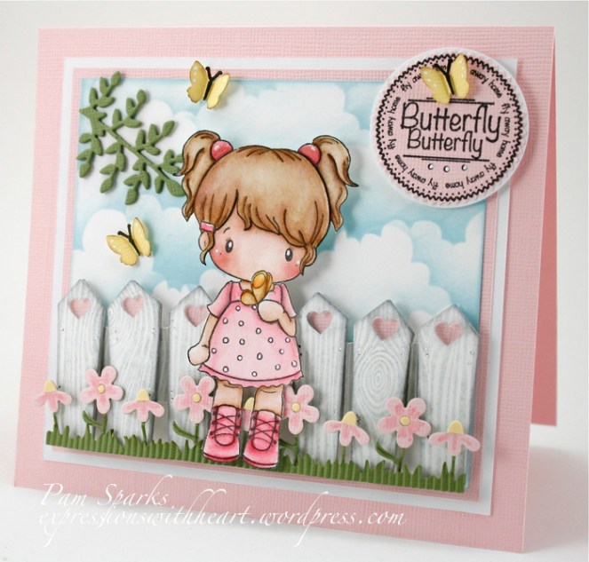 Here’s Butterfly Lucy from CC Designs to charm you with a little scene I created. I woke up at 4:19 Saturday a.m. with the idea to make the new fence die a heart fence… well…then I had to figure out how to do it because most punches punch from the bottom and would be upside down if you tried to punch from the top! Here’s a video to show you how I did it! I love it! Hope you’re inspired to try it too!