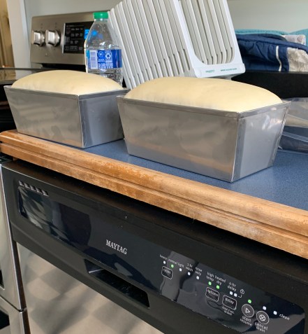 I guess I didn’t take pictures of these two loaves done! They’re really good!