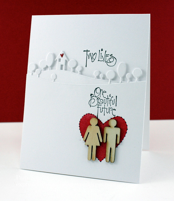 Another fun wedding card using a Memory Box border die, Printworks stamps, wood Potty People and a Doodlebug red heart embellishment.
