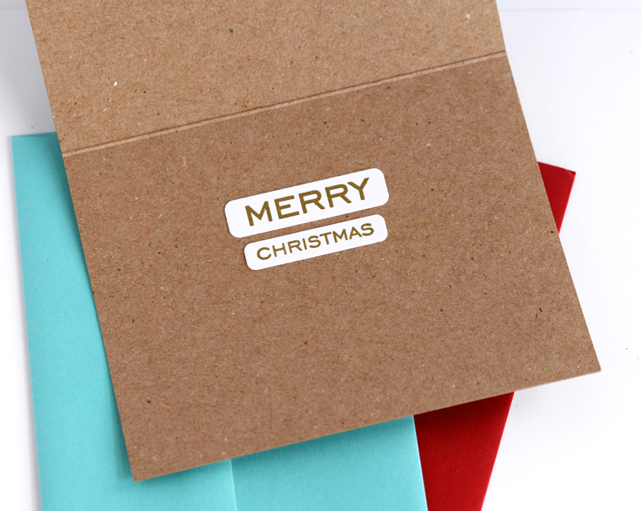 The sentiment on the front and inside is from the NEW Merry Sentiments Clear Stamp and Die set.  You stamp the whole thing and then die cut the whole thing!  So yes, you’ll have extra for another card!  And yes, it needs holly in there! lol