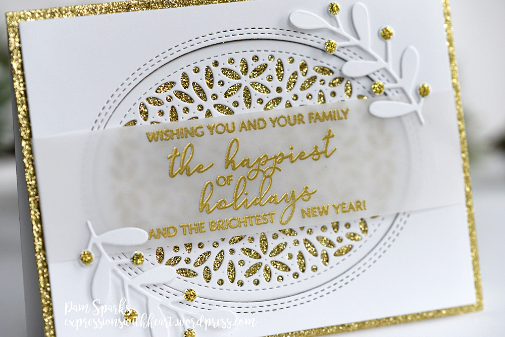 Then the oval white panel and the gold glitter panel I die cut with Memory Box Rectangle Basics dies.